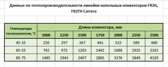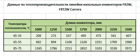 Модельний ряд підлогових конвекторів Каррера