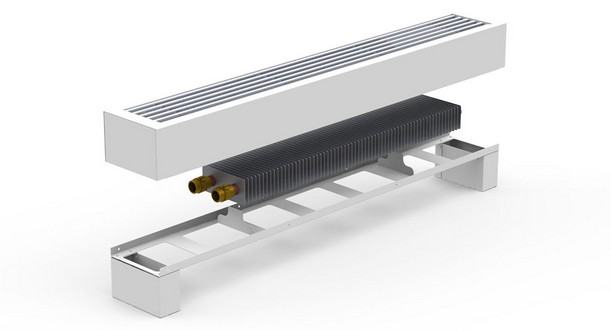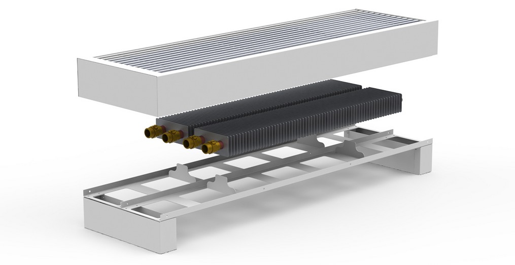 Основу підлогових конвекторів Carrera FRH/FR2H складають корпуси, виготовлені з тонких сталевих листів, обладнані антивібраційним кріпленням. Усередині нього розташований один або два мідно-алюмінієві теплообмінники. На такому опалювальному приладі встановлено дві ніжки. З їх допомогою не тільки забезпечується стійкість виробу, але й здійснюється підведення до пристрою нагріву.