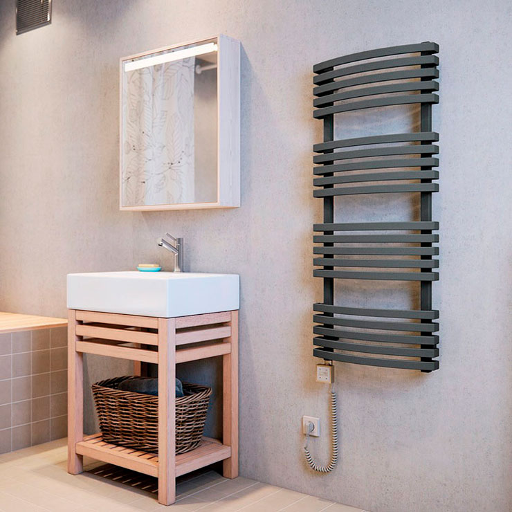 Електричні сушки для рушників Terma Kioto Electric користуються популярністю у споживачів завдяки елегантному сучасному дизайну, компактним габаритним розмірам, високій ефективності, простоті монтажу та доступній вартості. Вони мають класичну конструкцію драбинки з двома квадратними бічними колекторами та поперечними профілями прямокутного перерізу. Виробник випускає 5 типорозмірів приладу шириною 480 мм і висотою від 555 до 1500 мм.