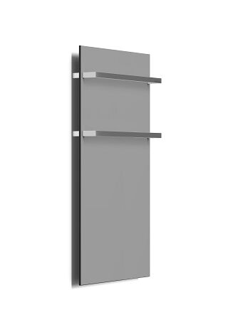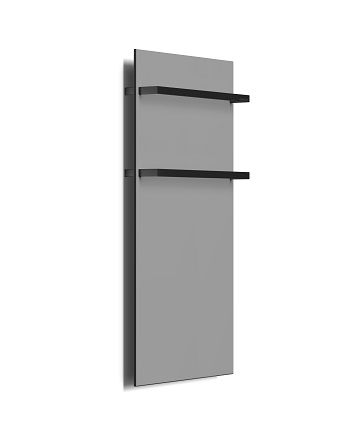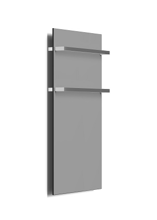 Представлена модель виготовлена з міцного гартованого скла (передня частина) та металевого корпусу (задня частина). Нагрівальний елемент розміщений посередині та немає доступу до повітря й вологи. Два рейлінги мають прямокутну форму і зроблені з нержавіючої сталі. Колір скла - сірий.