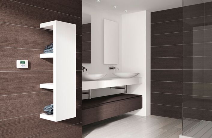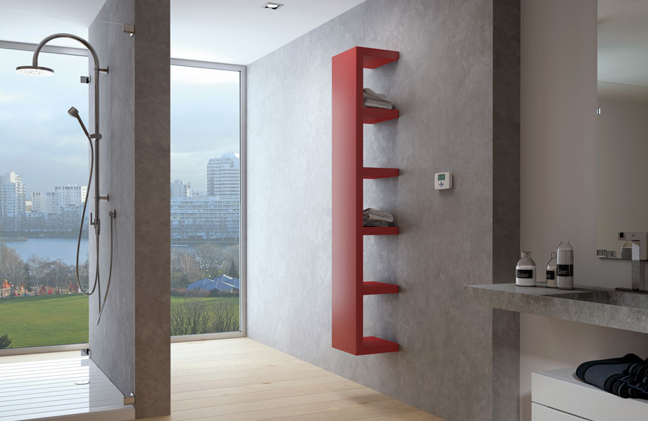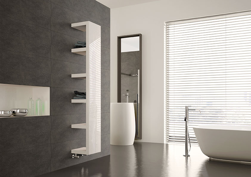 Irsap Quadraqua – дизайнерська сушка для рушників від чеської компанії з виготовлення опалювальної техніки. Крім основної функції обігріву приміщення цей прилад також виконує функцію дуже зручних поличок для зберігання.