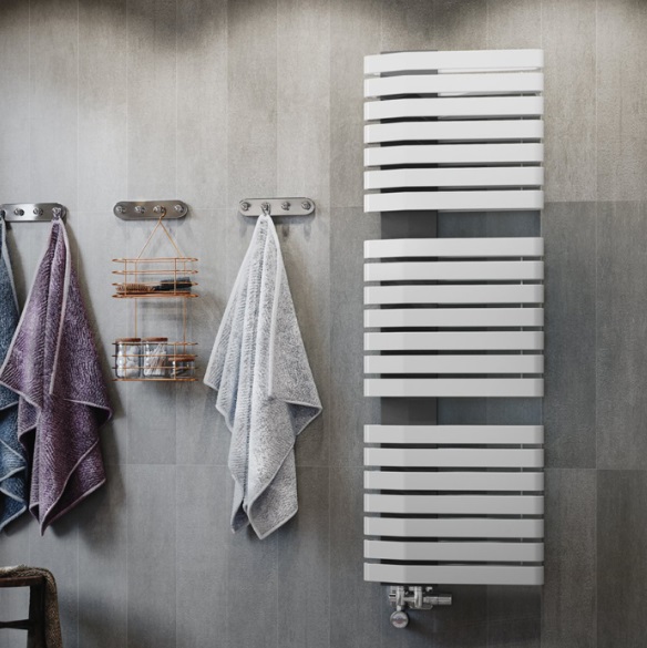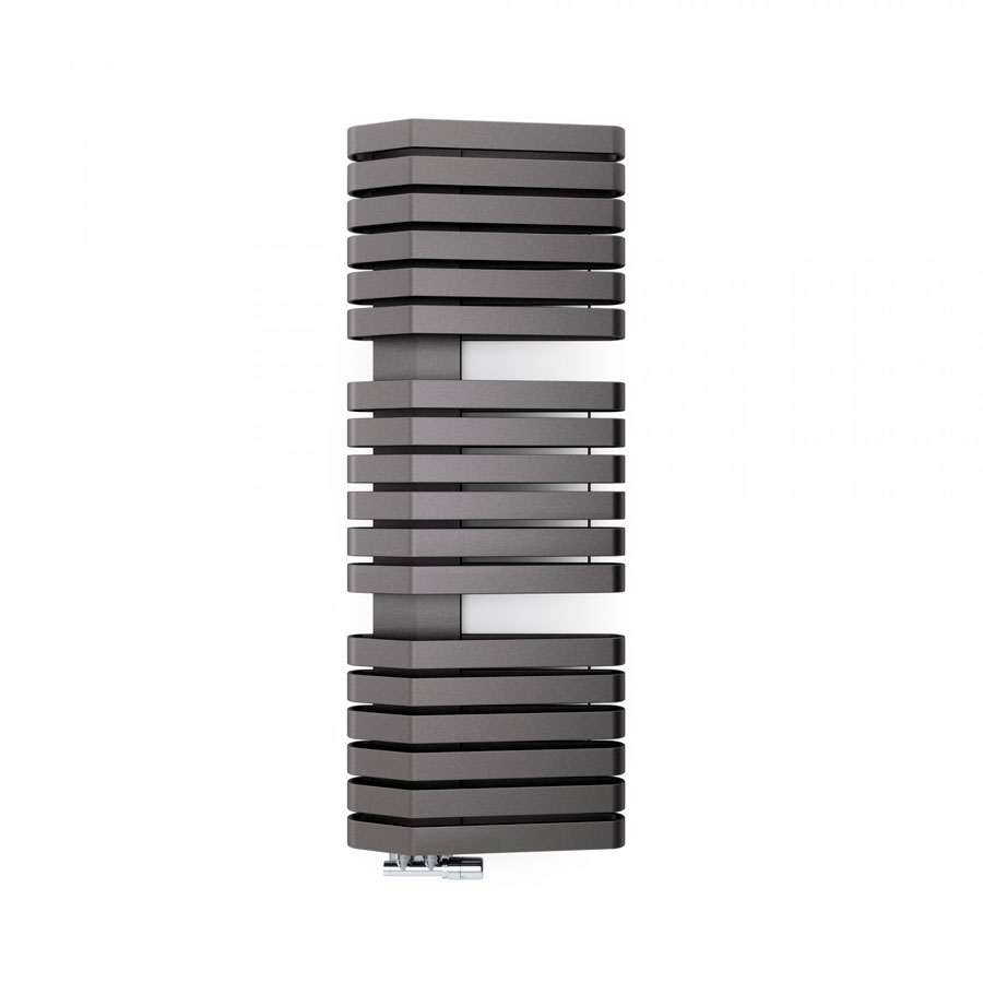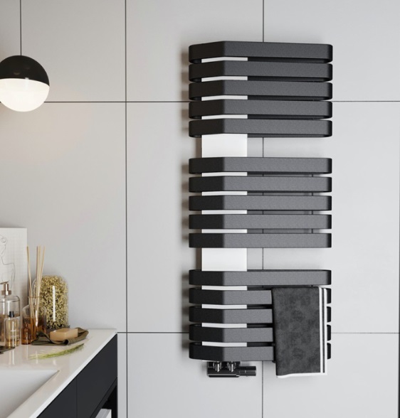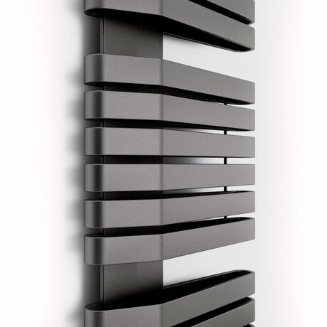 Terma Iron S - дуже незвичайна, злегка брутальна сушка для рушників від польського виробника опалювальної техніки. Дана модель складається з двох незалежних елементів: внутрішній обігрівач і ребра навколо нього. Плоскі ребра, розміром 10х50 мм, огинають асиметрично розташований колектор, що пом'якшує загальне сприйняття сушителя. Внутрішній колектор, на вибір покупця, може бути розташований зліва або праворуч.
