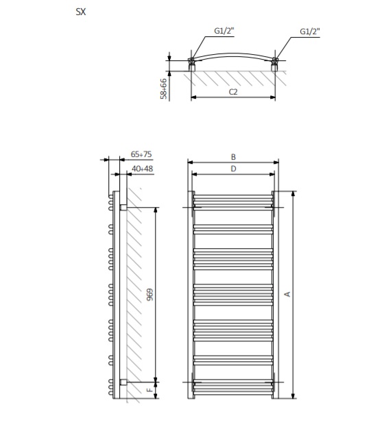 Рушникосушарки Terma Jade-M призначені для монтажу в автономну або централізовану систему водяного опалення. Завдяки високій тепловій потужності та ефективної конвекції їх можна використовувати не тільки для просушування рушників та білизни, але й для якісного обігріву ванних кімнат невеликого розміру. Модель випускається шириною 400, 500 або 600 мм та висотою 553, 753 або 1149 мм. Підключення з різьбленням G1/2” знаходиться в нижній частині двох бічних колекторів.