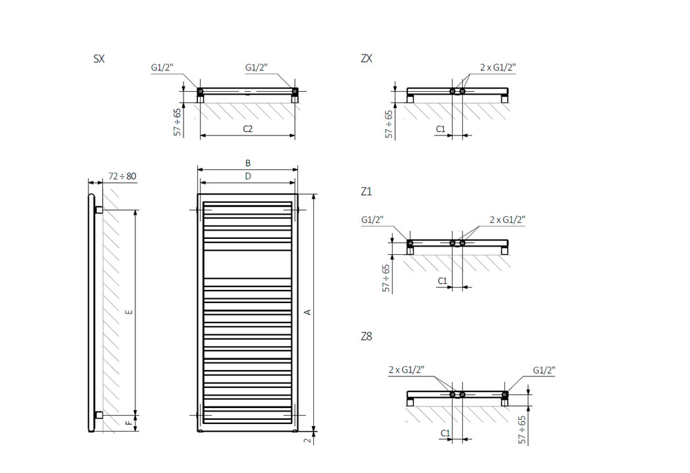Terma Lukka виконаний у формі прямокутної рамки-драбинки, де сходинками служать плоскі профілі. Елегантність форми досягається за рахунок верхньої та нижньої трубки колектора, які мають округлену форму. Порошкове покриття теплообмінника надійно захищає метал від корозії. Підключення до системи опалення здійснюється через патрубки G1/2”.