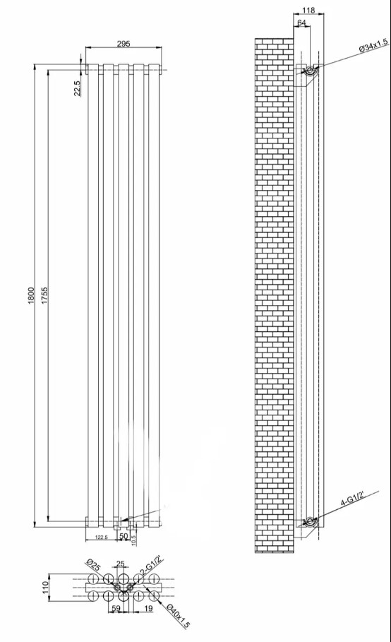 Технічні характеристики трубчастого радіатора ARTTIDESIGN Matera II