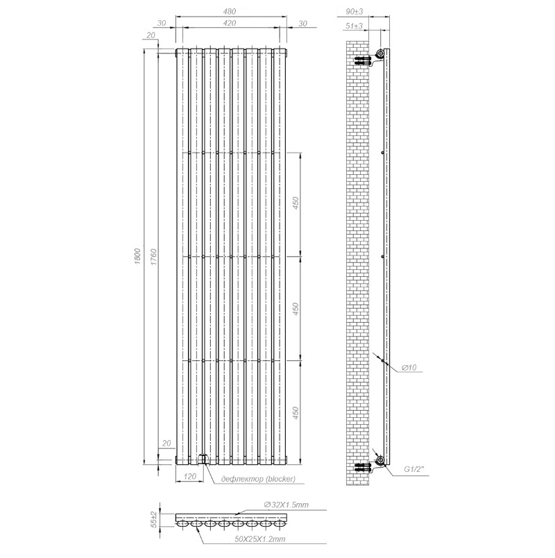 У комплект поставки входить: радіатор, комплект кріплень, дюбеля, відвідник повітря, заглушка, паспорт виробу. Упаковка – поліентилен + гофрокартон.