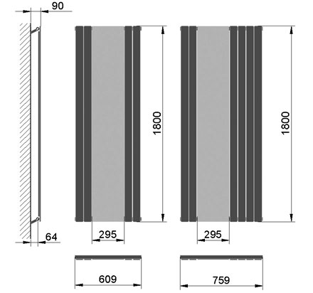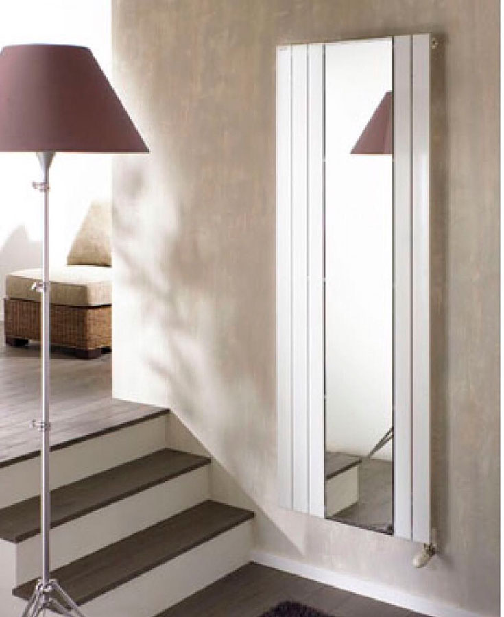 Спеціальний дизайнерський радіатор MIRROR (з дзеркалом). Відмінне рішення для Вашої ванної або передпокою. Додатково можна встановити вішалки чи гачки. Радіатор виробляється тільки однієї висоти 1800 мм і має два варіанти по ширині 609 і 759 мм. Радіатор складається з вертикальних плоских пластин та дзеркала по центру у моделі з шириною 609 мм, і трохи зміщене вліво у моделі 759 мм, що дозволяє більше вмістити речей у ванній кімнаті або передпокої. Радіатор даної моделі має не тільки приємний і красивий зовнішній вигляд, але і високі технічні характеристики, площа обігріву становить від 7 до 12 кв.м при W(75/65/20). Цей радіатор можна сказати є універсальним і добре поєднується з різними типами стилю інтер'єру.