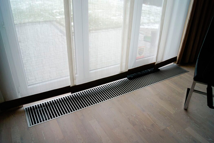- Прилад подачі тепла практично не помітний, завдяки вбудованості конвектора в підлогу.