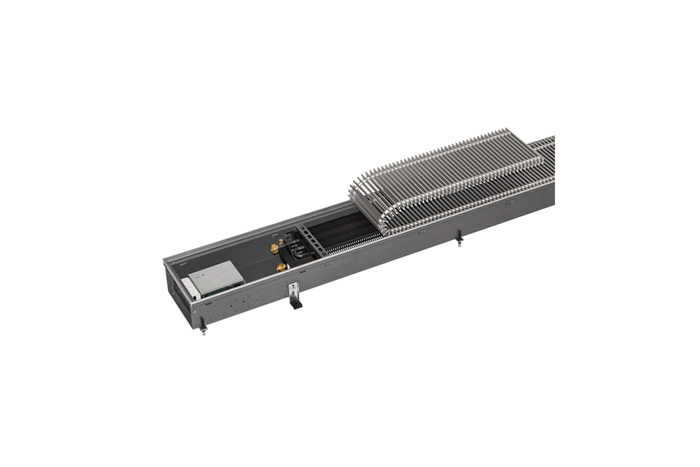 Конвектори внутрішньопідлогові Kampmann Katherm QK характеризуються компактним виконанням. Примусова конвекція забезпечується майже безшумним функціонуванням двох діаметрально розташованих вентиляторів.