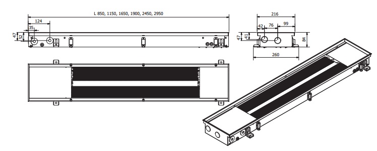 Детальний опис Внутрішньопідлоговий конвектор Konveka FH4-H