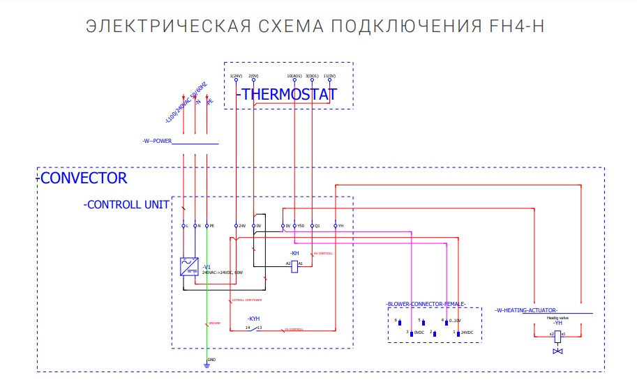 - трансформатор для перетворення струму з 220В на 24В (може бути встановлений усередині конвектора)