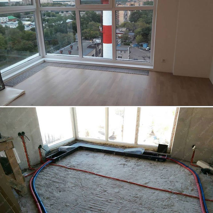 Салон Тепла пропонує нестандартні, кутові конвектори. Дуже часто в приміщенні немає можливості встановити стандартний конвектор, цьому можуть заважати колони, суцільне радіусне скління, або ж влитися в дизайн кімнати треба з плавно перехідними конструкціями. Ось тоді вам і допоможуть фахівці нашої компанії, які вже поставили та прорахували не один внутрішньопідлоговий конвектор нестандартної конструкції.
