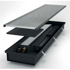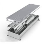 Внутрипольные конвекторы отопления — это приборы, передающие в помещение конвекцией до 90 — 95% всего теплового потока. Они делятся на конвекторы с естественной конвекцией (без вентилятора), конвекторы с принудительной конвекцией (с вентилятором). В отличие от электрических конвекторов они являются более экономичными по эксплуатационным затратам, более надежными и долговечными. Водяные конвекторы состоят из корпуса (или канала), защитной (декоративной) решетки, теплообменника из медных труб и алюминиевых теплообменных пластин, узлов подключения и клапана воздухоудаления. Нагреватель или теплообменник у современных внутрипольных конвекторов выполняется комбинированным — медная трубка, имеющая оребрение из алюминиевых пластин, припаянных серебряным флюсом (медно-алюминиевый теплообменник), а канал в зависимости от производителя либо из нержавеющей стали, либо из оцинкованной стали покрытой порошковыми красками. Подключаются к любым типам подводящих труб (любой материал и любые диаметры).