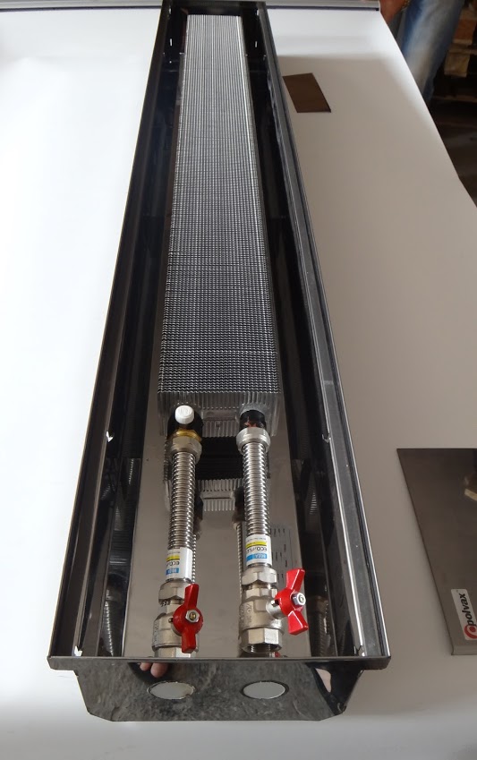 Внутрипольные конвекторы Polvax (естественная конвекция) - без вентилятора используется в помещении с большими остекленными площадями. Как показывает практика они с успехом применяются как для отопления элегантных, просторных в жилом строительстве, так и в общественных зданиях (напр. выставочные залы, автомобльные салоны), а также музеев, дворцов, т.е. везде там где мы хотим обеспечить оптимальную температуру, сохранить характер и эстетику интерьера и его функциональность. Может использоваться как автономно в помещениях с невысокой потребностью в обогреве, так и комбинироваться с другими отопительными приборами. При правильном подборе может быть единственным источником отопления.