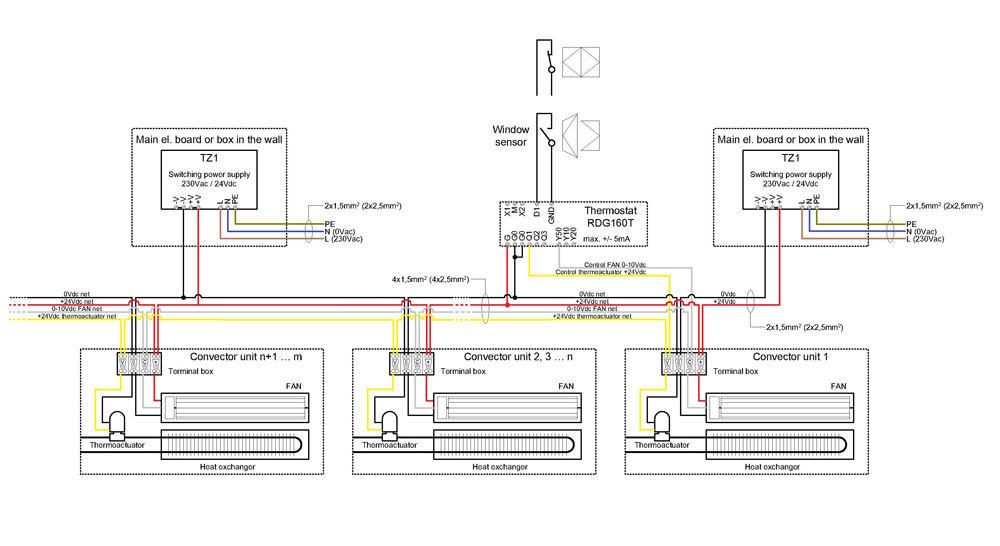 Данная модель конвектора используется только для сухих помещений, ее любят монтажники за то, что для ее подключения не требуется подвод воды, прибор работает от  сети (230 В). Тепло здесь вырабатывается благодаря электрическому теплообменнику, в комбинации с вентилятором (одна скорость) на выходе получаем мощный отопительный прибор.