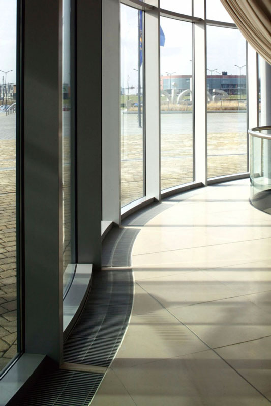 В современных административных зданиях и других объектах с большой площадью остекления использование отопительных приборов, располагаемых перед окнами, по эстетическим соображениям часто неприемлемо. Одновременно возрастают требования пользователей помещений к пространственной эстетике. Размещение конвектора со стороны окна обеспечивает при любой ширине канала эффективную защиту от холодного воздуха.