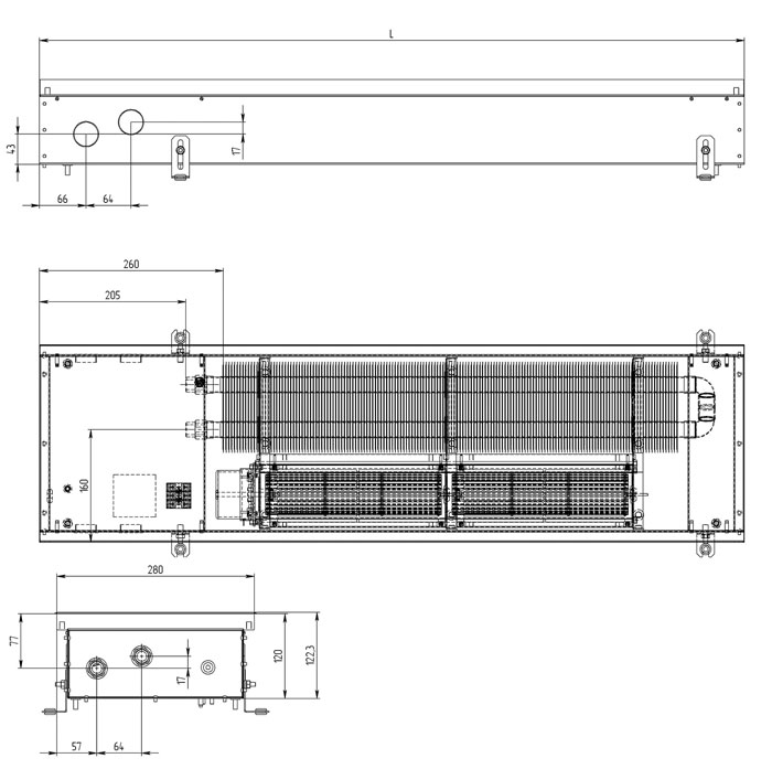Внутрипольный конвектор Carrera SV/SV2 - самый продаваемый прибор в ассортименте торговой марки украинского бренда Каррера. Стандартно корпус данного прибора изготовляется из стали окрашенной в черный цвет (наличие на складе) - такой вариант пользуется популярность по причине меньшей просматриваемости внутриностей конвектора через решетку. По желанию клиента возможно исполнение из нержавеющей стали или алюминия (толщина стенки 2 мм). Высота корпуса может составлять 90 или 120 мм. Отверствия для подключение фанкойла к системе отопление выполнено с трех сторон, с помощью регулировочных болтов можно менять высоту при монтаже.