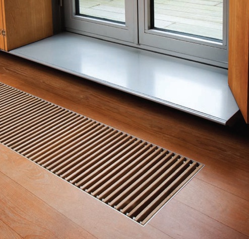 Решетка имеет привлекательный внешний вид и состоит из алюминиевых ламелей расположеных продольно, а не поперечно. Имеет высоту профиля - 18 мм, ширину - 7 мм и расстояние между планками - 12,5 мм. Заказ данного типа решетки согласовывается сразу при выборе конвектора, так как желоб в конвекторе, на который укладывается решетка корректируется по глубине и сдвигается внутрення часть корпуса.